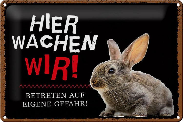 Blechschild Spruch 30x20cm Tiere Hase hier wachen wir