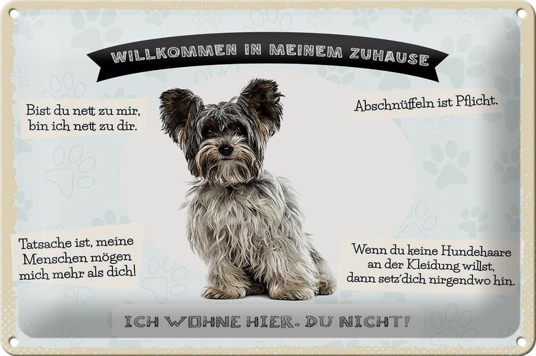 - TitelBlechschild Spruch 30x20cm Tiere Yorkshire Terriere willkommen [ORIGINAL BLECHSCHILD von FEMER]