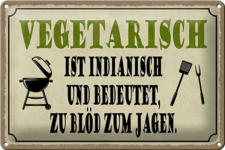 - TitelBlechschild Spruch 30x20cm vegetarisch ist indianisch Grill [ORIGINAL BLECHSCHILD von FEMER]