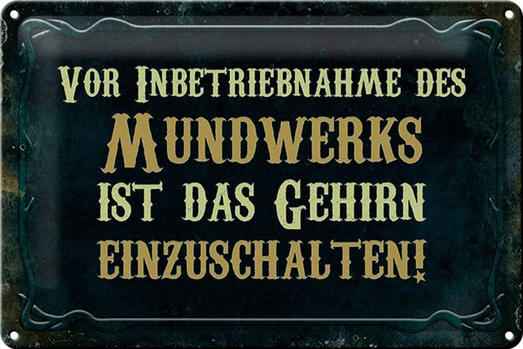 Blechschild Spruch 30x20cm vor Inbetriebnahme des Mundwerks