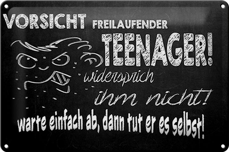 - TitelBlechschild Spruch 30x20cm Vorsicht freilaufender Teenager [ORIGINAL BLECHSCHILD von FEMER]
