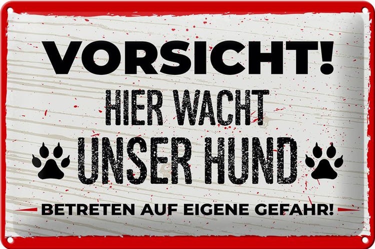 - TitelBlechschild Spruch 30x20cm Vorsicht Hier wacht unser Hund [ORIGINAL BLECHSCHILD von FEMER]