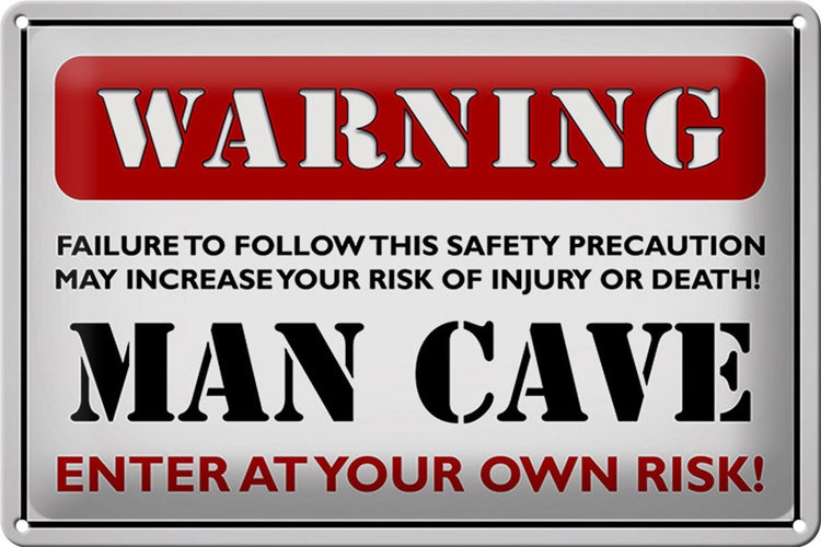 - TitelBlechschild Spruch 30x20cm Warning man cave enter at your weiß [ORIGINAL BLECHSCHILD von FEMER]