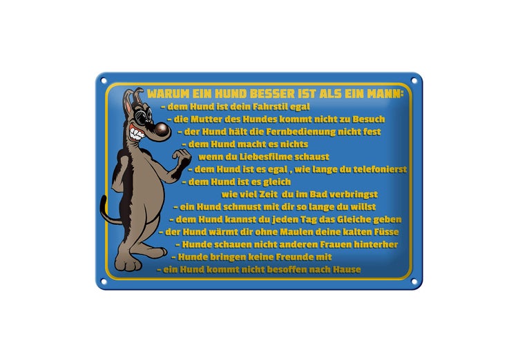 - TitelBlechschild Spruch 30x20cm Warum Hund besser ist als Mann [ORIGINAL BLECHSCHILD von FEMER]