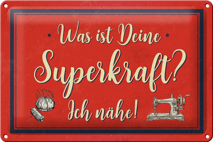 - TitelBlechschild Spruch 30x20cm was deine Superkraft ich nähe [ORIGINAL BLECHSCHILD von FEMER]