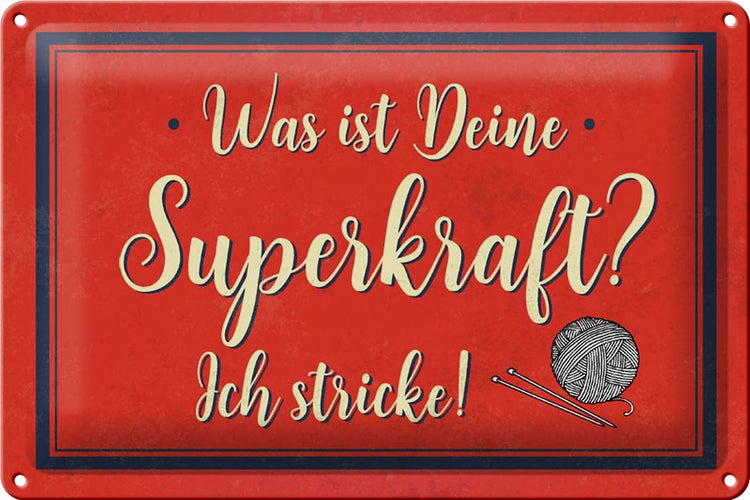 - TitelBlechschild Spruch 30x20cm was deine Superkraft ich stricke [ORIGINAL BLECHSCHILD von FEMER]