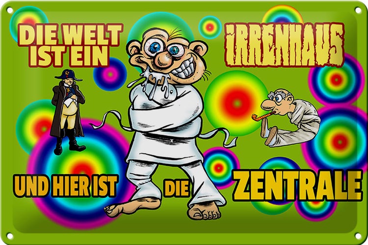- TitelBlechschild Spruch 30x20cm Welt ist Irrenhaus hier ist Zentrale [ORIGINAL BLECHSCHILD von FEMER]