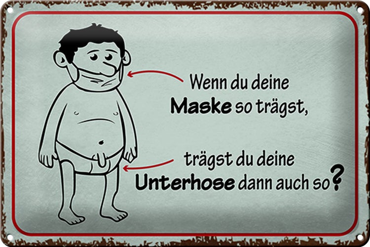 Blechschild Spruch 30x20cm wenn du deine Maske so trägst [ORIGINAL BLECHSCHILD von FEMER]