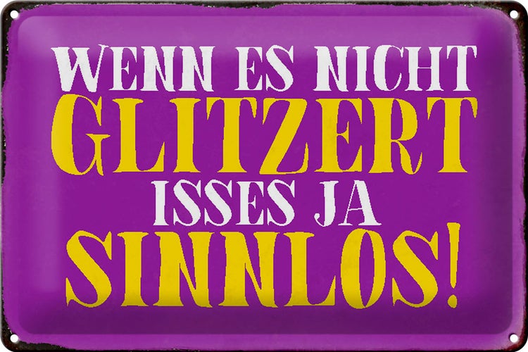 - TitelBlechschild Spruch 30x20cm wenn es nicht glitzert sinnlos [ORIGINAL BLECHSCHILD von FEMER]