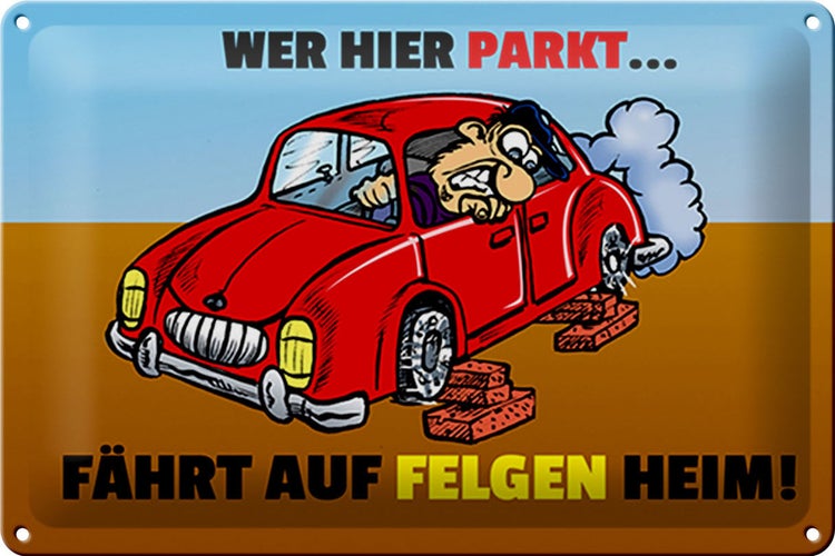 - TitelBlechschild Spruch 30x20cm Wer hier parkt fährt auf Felgen Heim [ORIGINAL BLECHSCHILD von FEMER]