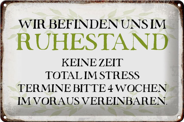 Blechschild Spruch 30x20cm wie im Ruhestand keine Zeit