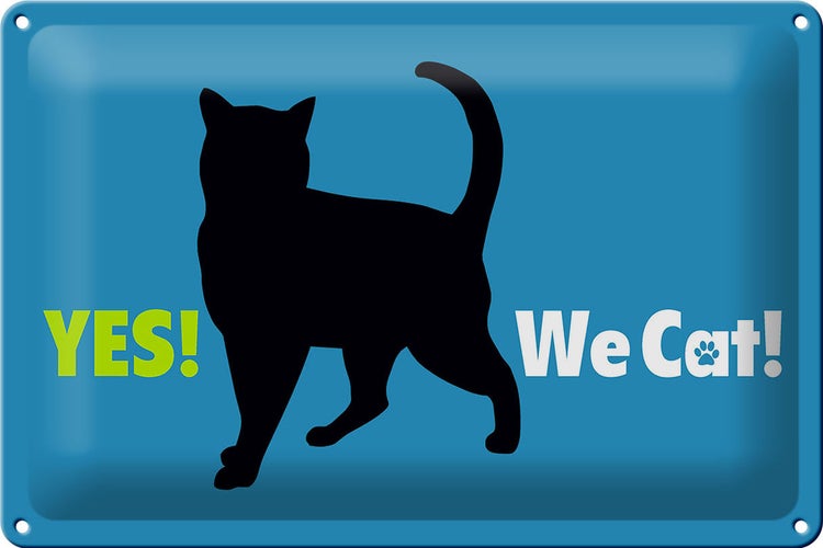- TitelBlechschild Spruch 30x20cm Yes We cat Katze blau [ORIGINAL BLECHSCHILD von FEMER]