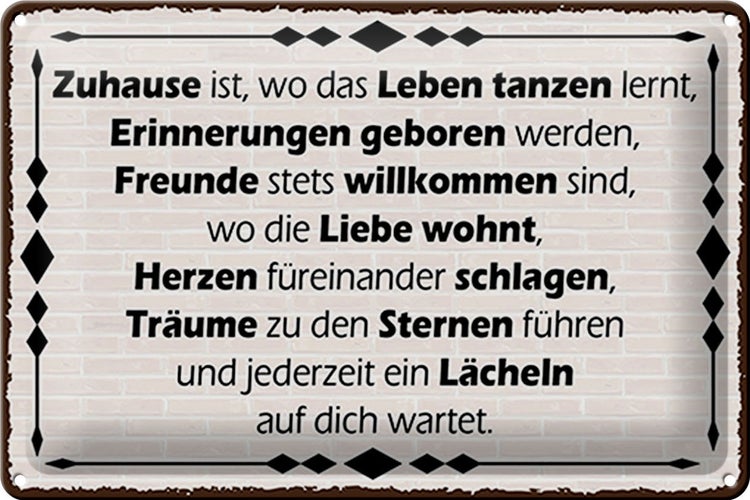 - TitelBlechschild Spruch 30x20cm Zuhause ist wo Leben tanzen lernt [ORIGINAL BLECHSCHILD von FEMER]