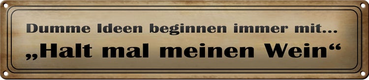 - TitelBlechschild Spruch 46x10cm Dumme Ideen mit halt meinen Wein Dekoration [ORIGINAL BLECHSCHILD von FEMER]