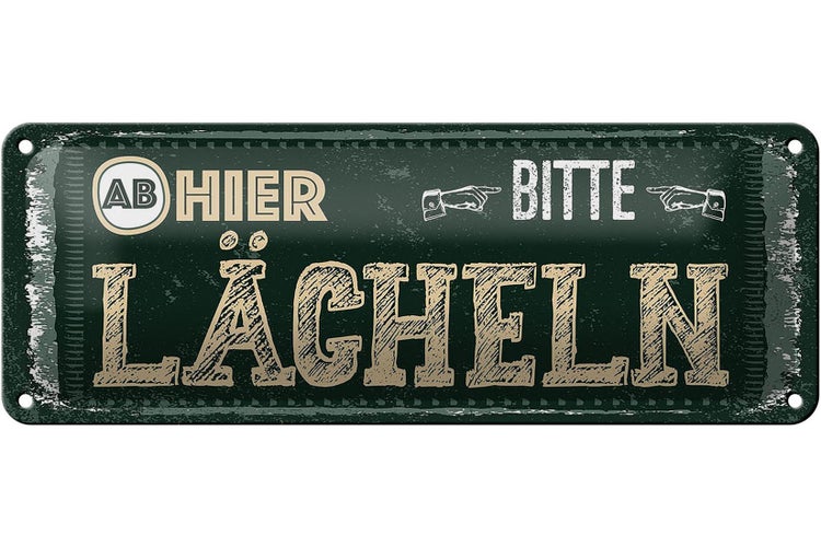 - TitelBlechschild Spruch Ab hier bitte lächeln 27x10cm [ORIGINAL BLECHSCHILD von FEMER]