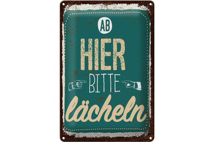 - TitelBlechschild Spruch Ab hier bitte lächeln Lachen Glück 20x30cm [ORIGINAL BLECHSCHILD von FEMER]
