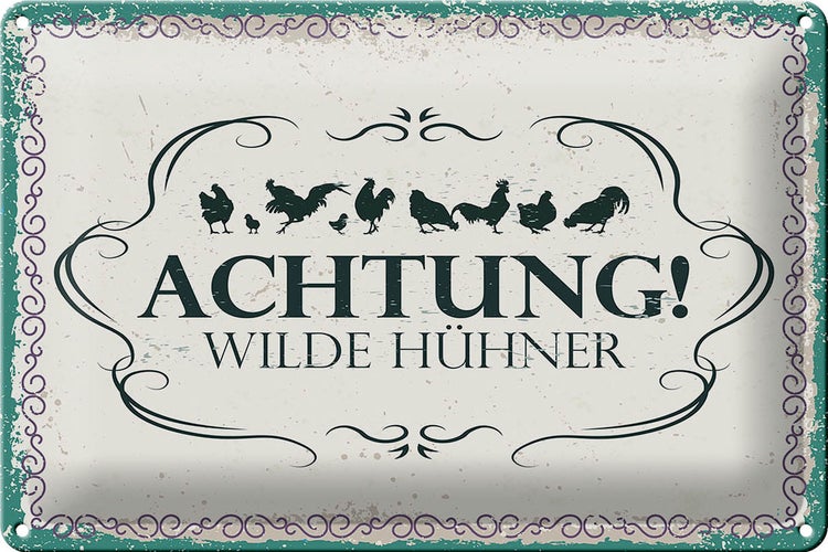 - TitelBlechschild Spruch Achtung Wilde Hühner 30x20cm [ORIGINAL BLECHSCHILD von FEMER]