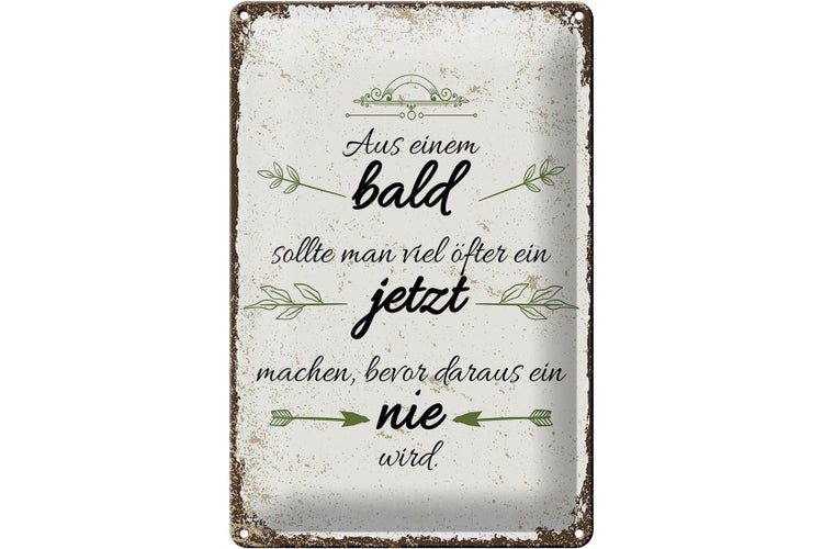 - TitelBlechschild Spruch aus BALD sollte JETZT bevor NIE 20x30cm [ORIGINAL BLECHSCHILD von FEMER]