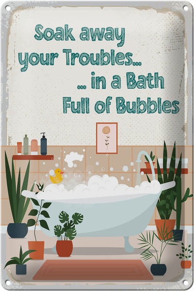 Blechschild Spruch Bad Soak away your Troubles Bath 20x30cm