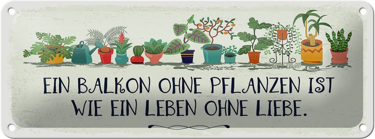 - TitelBlechschild Spruch Balkon ohne Pflanzen Leben ohne 27x10cm [ORIGINAL BLECHSCHILD von FEMER]
