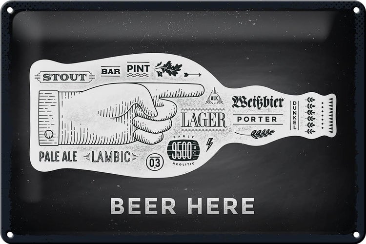 - TitelBlechschild Spruch Beer here Flasche Bier 30x20cm [ORIGINAL BLECHSCHILD von FEMER]