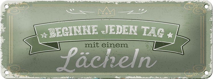 - TitelBlechschild Spruch Beginne jeden Tag mit dem Lächeln 27x10cm [ORIGINAL BLECHSCHILD von FEMER]