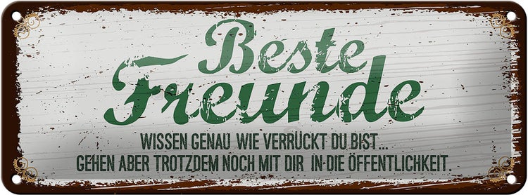 - TitelBlechschild Spruch Beste Freunde verrückt wissen genau 27x10cm [ORIGINAL BLECHSCHILD von FEMER]