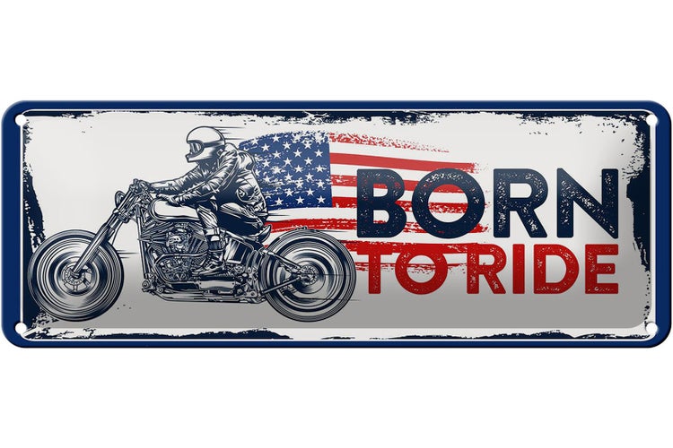 - TitelBlechschild Spruch Biker Born to Ride USA 27x10cm Motorcycle [ORIGINAL BLECHSCHILD von FEMER]