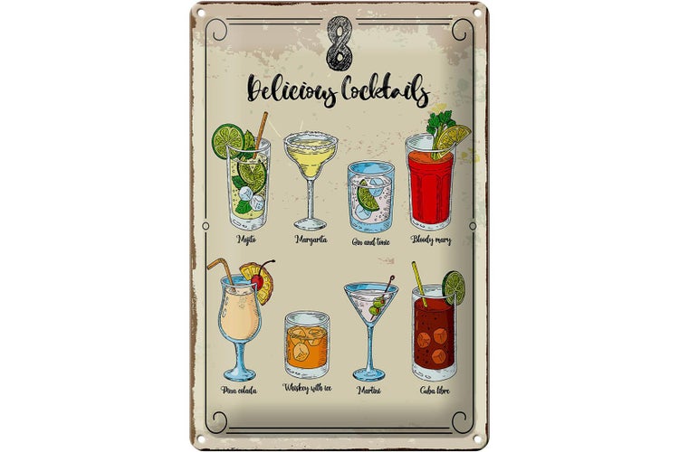 Blechschild Spruch Cocktails Mojito Martini Margarita 20x30cm