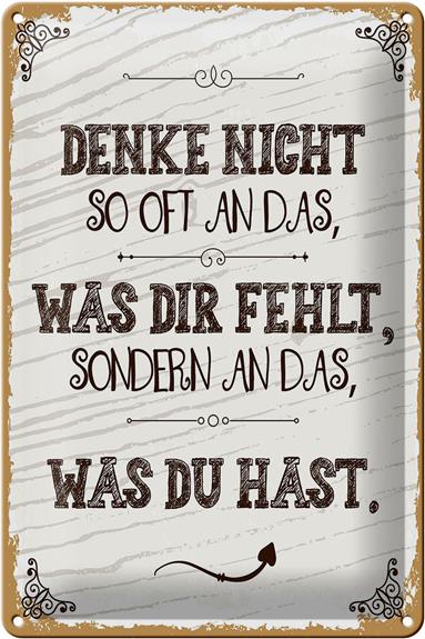 Blechschild Spruch denke nicht was fehlt sondern 20x30cm