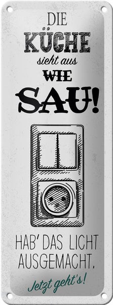 Blechschild Spruch Die Küche sieht aus wie Sau! 10x27cm