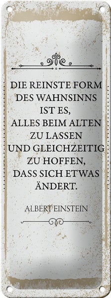 Blechschild Spruch Einstein reinste Form Wahnsinns 10x27cm