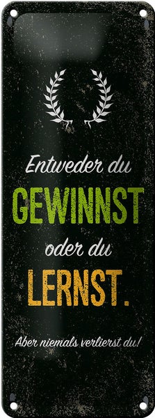 - TitelBlechschild Spruch Entweder du gewinnst oder lernst 10x27cm [ORIGINAL BLECHSCHILD von FEMER]