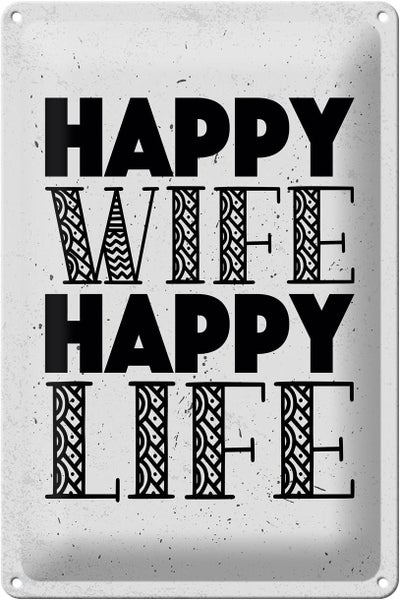 - TitelBlechschild Spruch Frau Happy wife happy Life 20x30cm weißes Schild [ORIGINAL BLECHSCHILD von FEMER]