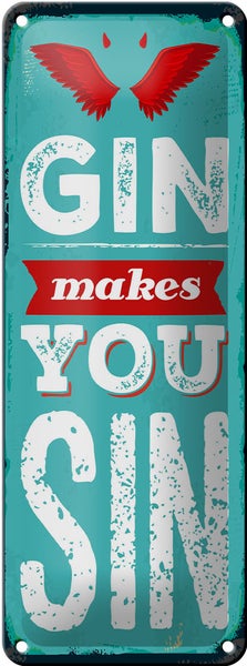 Blechschild Spruch Gin makes you Sin Devil Hell 10x27cm Dekoration