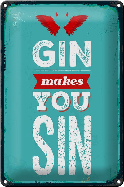 - TitelBlechschild Spruch Gin makes you Sin Devil Hell 20x30cm [ORIGINAL BLECHSCHILD von FEMER]