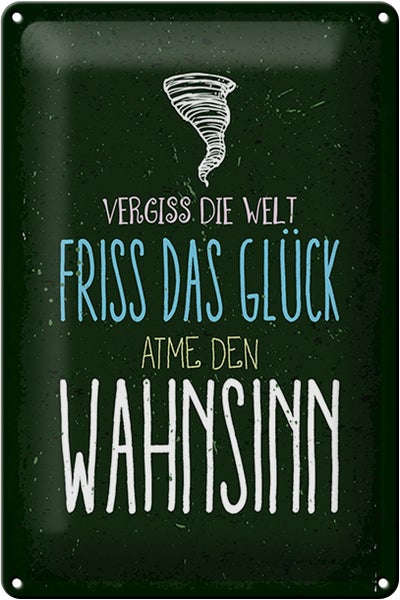 - TitelBlechschild Spruch Glück vergiss Welt atme Wahnsinn 20x30cm [ORIGINAL BLECHSCHILD von FEMER]