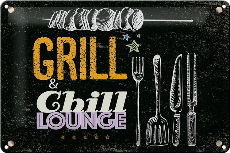 Blechschild Spruch Grill & Chill Fleisch Grillen 30x20cm