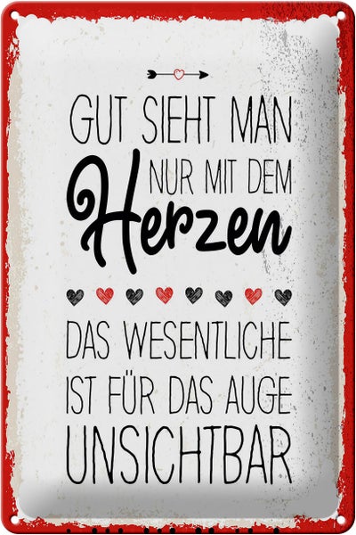 Blechschild Spruch Gut sieht man nur mit dem Herzen 20x30cm