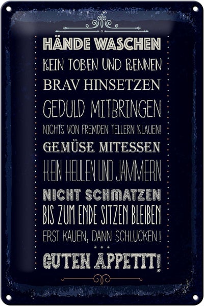 - TitelBlechschild Spruch Hände waschen kein toben 20x30cm [ORIGINAL BLECHSCHILD von FEMER]