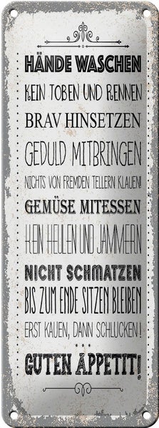 - TitelBlechschild Spruch Hände waschen kein toben rennen 10x27cm [ORIGINAL BLECHSCHILD von FEMER]