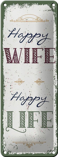 - TitelBlechschild Spruch Happy wife happy Life 10x27cm Dekoration [ORIGINAL BLECHSCHILD von FEMER]
