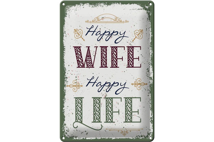 - TitelBlechschild Spruch Happy wife happy Life 20x30cm [ORIGINAL BLECHSCHILD von FEMER]