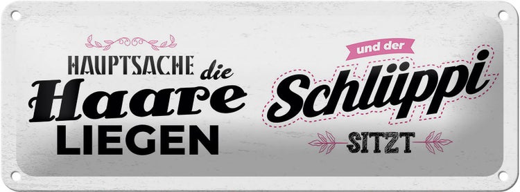 - TitelBlechschild Spruch Hauptsache Haare liegen Schlüppi 27x10cm [ORIGINAL BLECHSCHILD von FEMER]