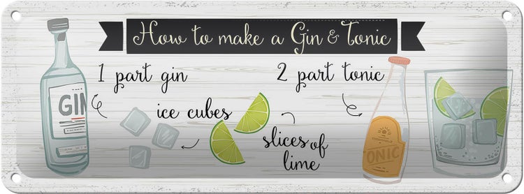- TitelBlechschild Spruch How to make a Gin & Tonic 27x10cm Dekoration [ORIGINAL BLECHSCHILD von FEMER]