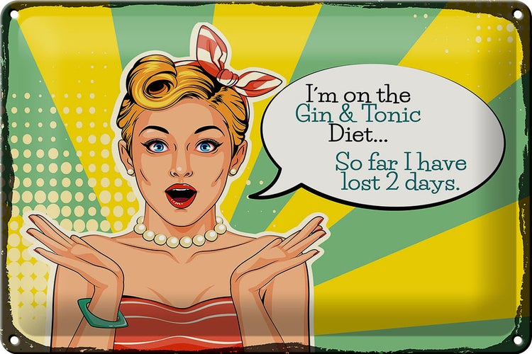 - TitelBlechschild Spruch I´m on the Gin & Tonic Diet 30x20cm [ORIGINAL BLECHSCHILD von FEMER]