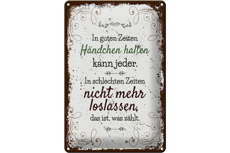 Blechschild Spruch In guten Zeiten Händchen halten 20x30cm