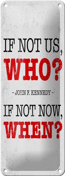 Blechschild Spruch John Kennedy If not us who if not 10x27cm