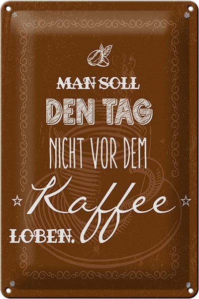 - TitelBlechschild Spruch Kaffee den Tag nicht vor dem loben 20x30cm [ORIGINAL BLECHSCHILD von FEMER]