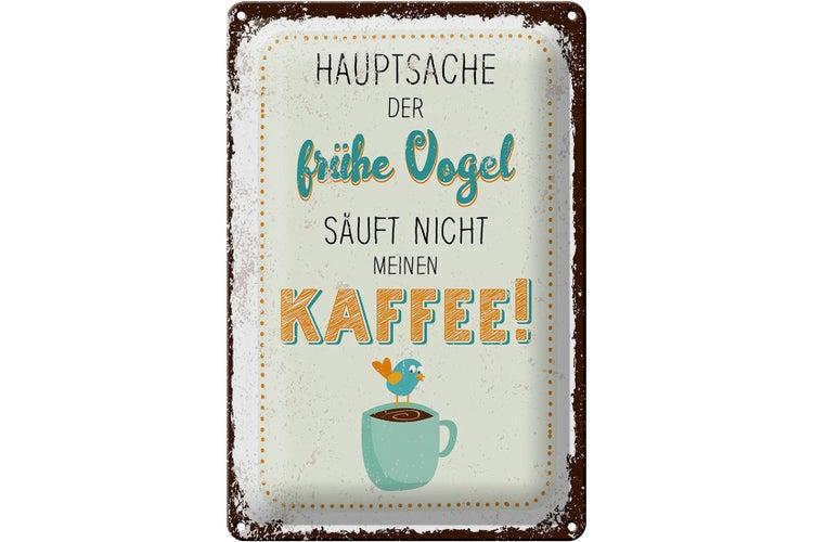 - TitelBlechschild Spruch Kaffee der frühe Vogel säuft nicht 20x30cm [ORIGINAL BLECHSCHILD von FEMER]